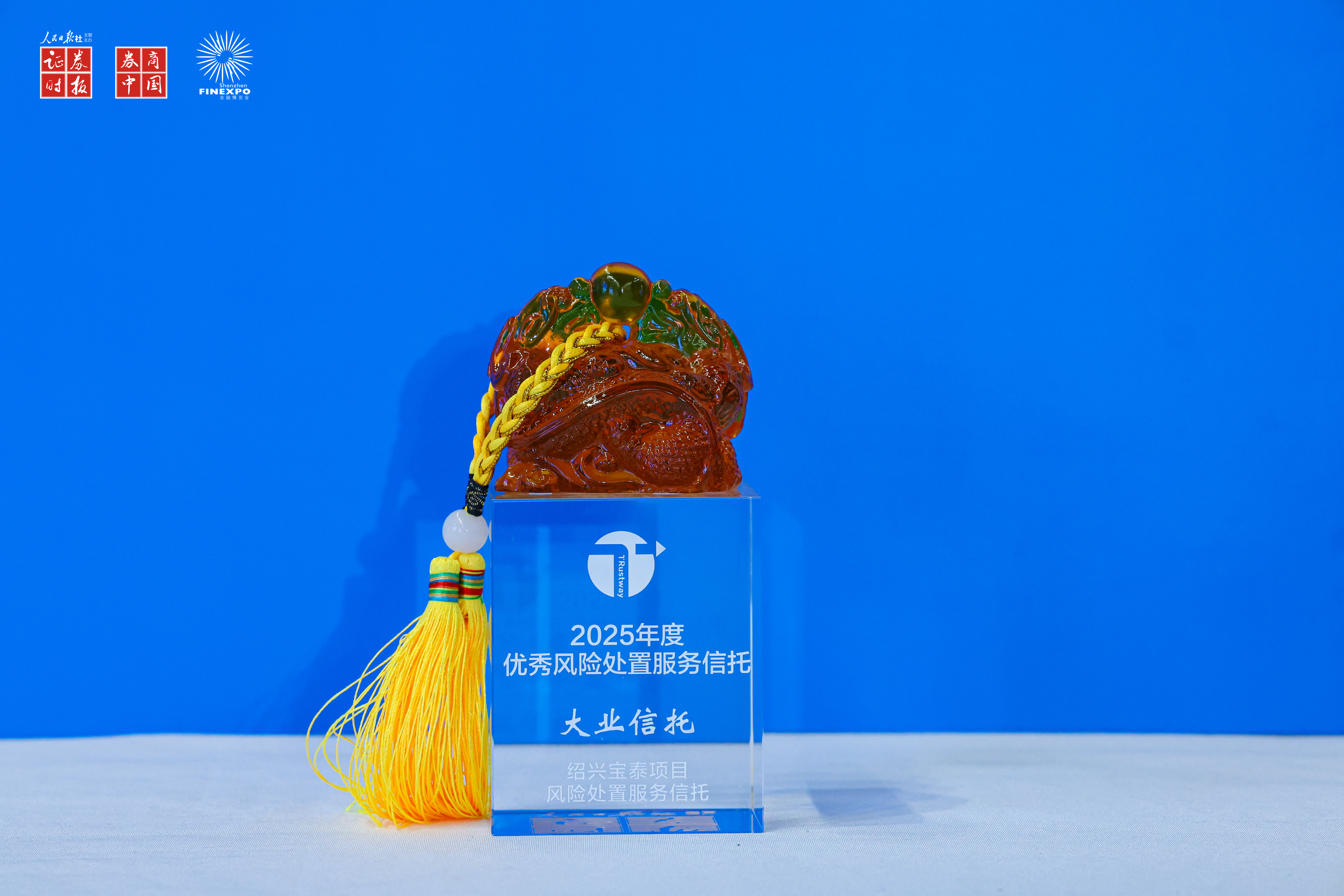2025年11月,大业信托“绍兴项目风险处置服务信托”在证券时报主办的2025年度优秀信托公司评选活动中荣获“优秀风险处置服务信托”奖。该项目是大业信托贯彻落实国家关于房地产化解风险“十六条”政策的积极探索,也是响应监管政策积极转型,利用信托结构化解金融风险承担社会责任,落实金融工作政治性、人民性的一次有益尝试。